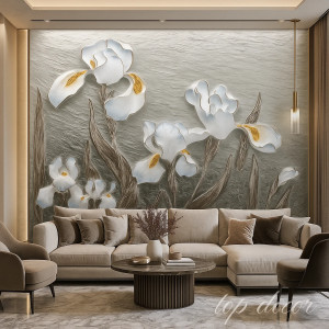پوستر دیواری سهبعدی طرح گلهای زنبق نقرهای