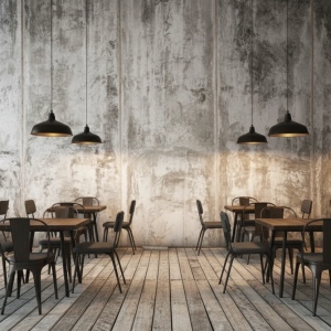 پوستر دیواری سهبعدی دیوار بتنی مینیمال با کف چوبی