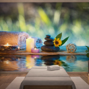 پوستر دیواری آرامشبخش اسپا | سنگ و شمع طبیعت