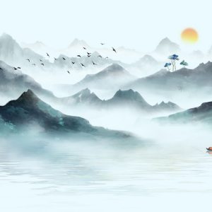 پوستر دیواری سه بعدی نقاشی کوه و خورشید