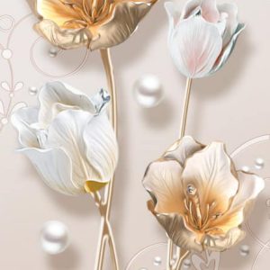 پوستر دیواری سه بعدی طرح گل مصنوعی طلایی