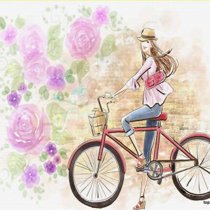 پوستر دیواری سه بعدی طرح کودک دختر دوچرخه سوار