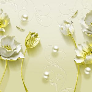 پوستر دیواری سهبعدی گلهای کرم نگیندار با طرح لوکس کلاسیک