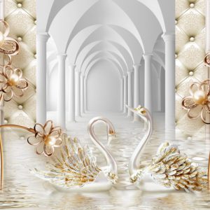 پوستر دیواری سه بعدی طرح گل مصنوعی و قو