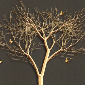 پوستر دیواری سه بعدی طرح درخت طلایی و پرنده