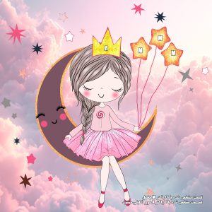 پوستر دیواری طرح کودک دختر روی ماه نشسته زمینه ابری