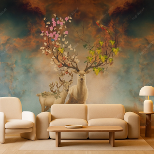پوستر دیواری گوزنهای فانتزی با شاخهای گلدار